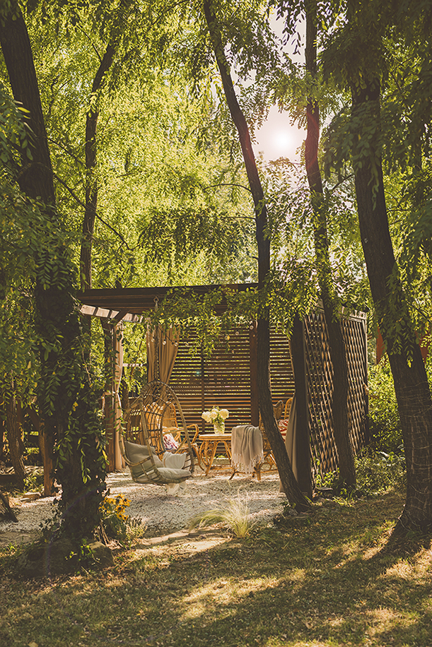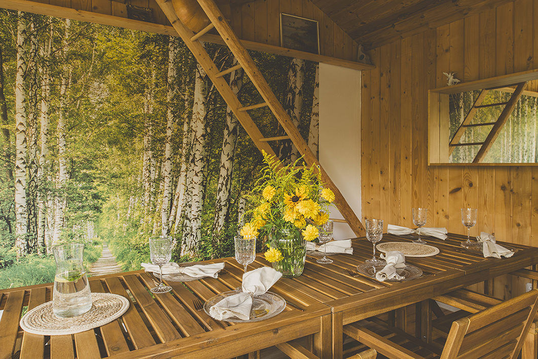 także koc piknikowy, hamak, huśtawkę oraz domek na drzewie.