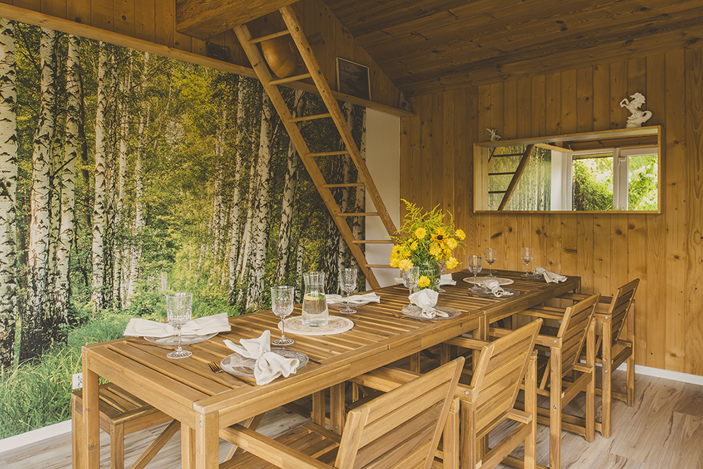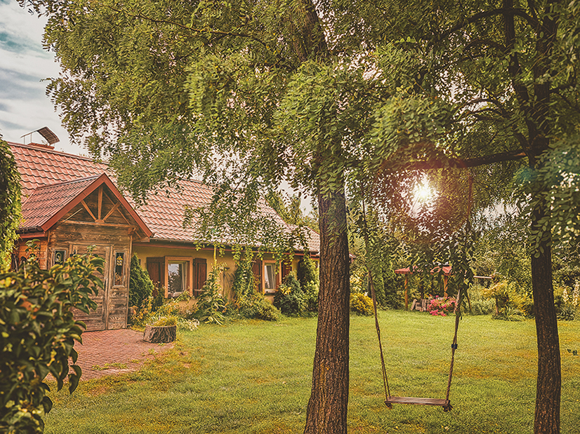 także koc piknikowy, hamak, huśtawkę oraz domek na drzewie.