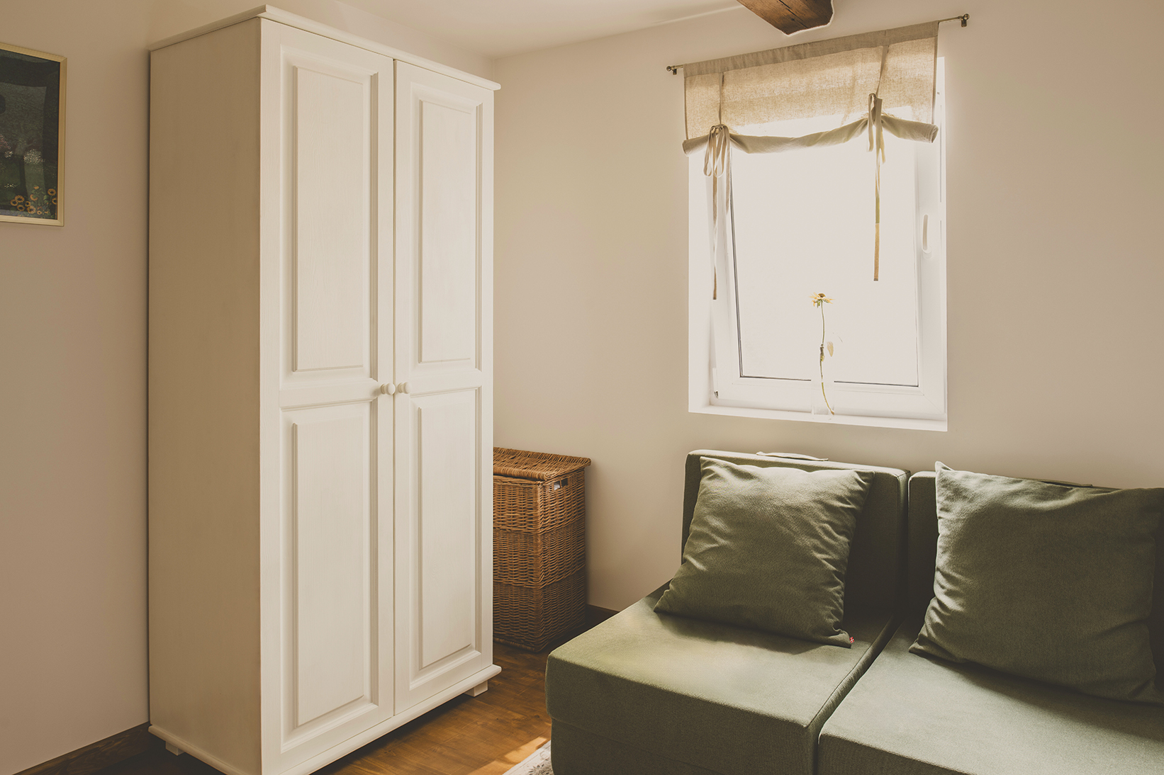 W salonie znajduje się rozkładana sofa, idealna na nocleg dla dwóch dodatkowych osób. Dla komfortu gości przygotowaliśmy