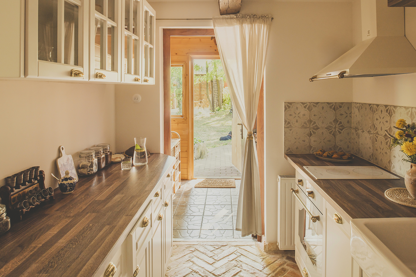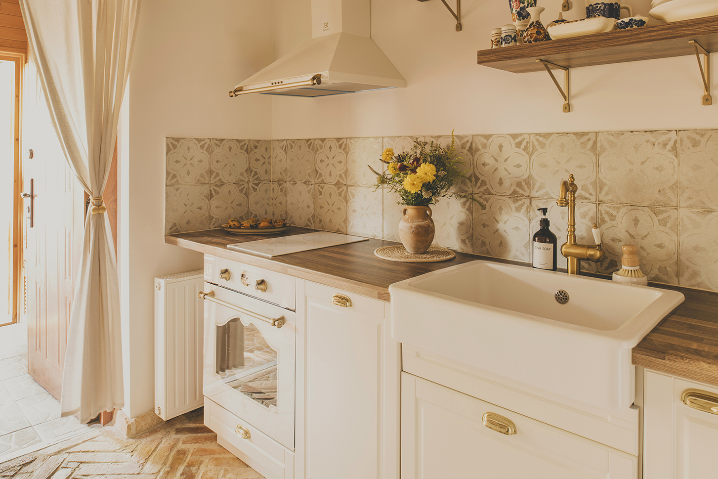 Domek posiada także w pełni wyposażoną kuchnię (lodówka, zmywarka, piekarnik, patelnie, garnki, naczynia, podstawowe przyprawy kuchenne, herbaty i kawy) oraz łazienkę z prysznicem (zapewniamy również ręczniki).